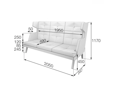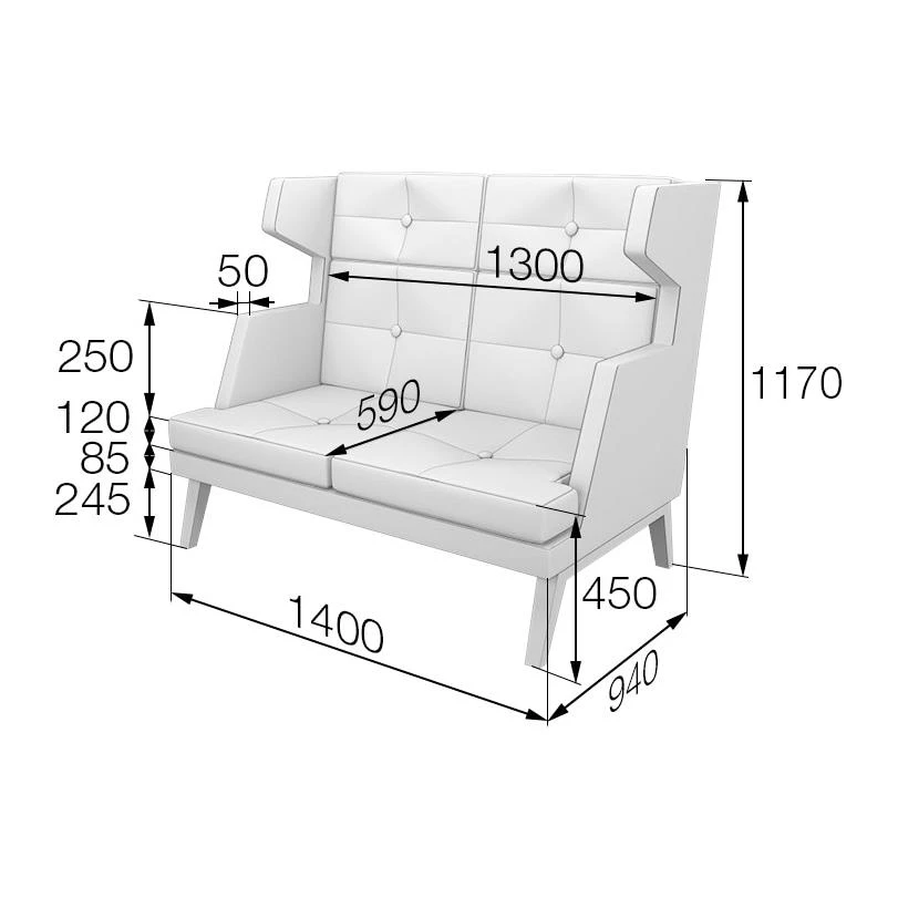 Диван 2-местный высокий Bev2H Беверли MVK