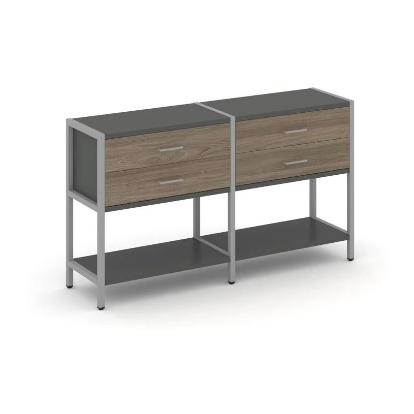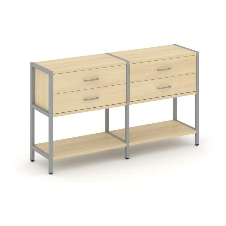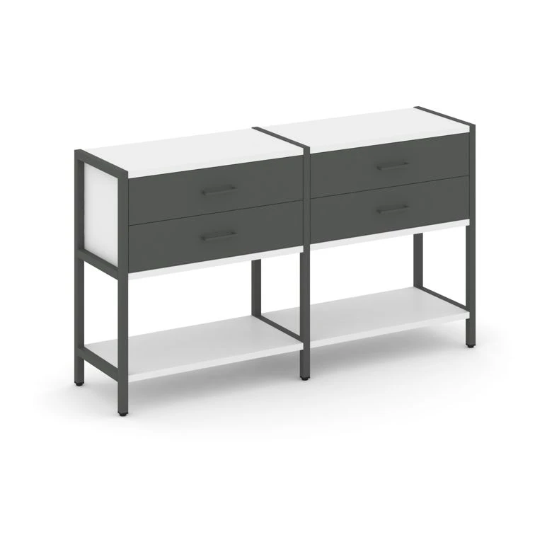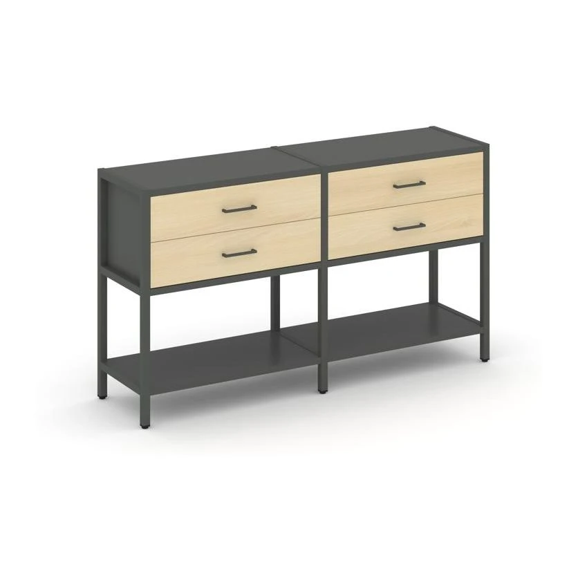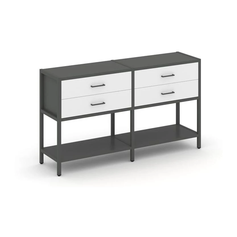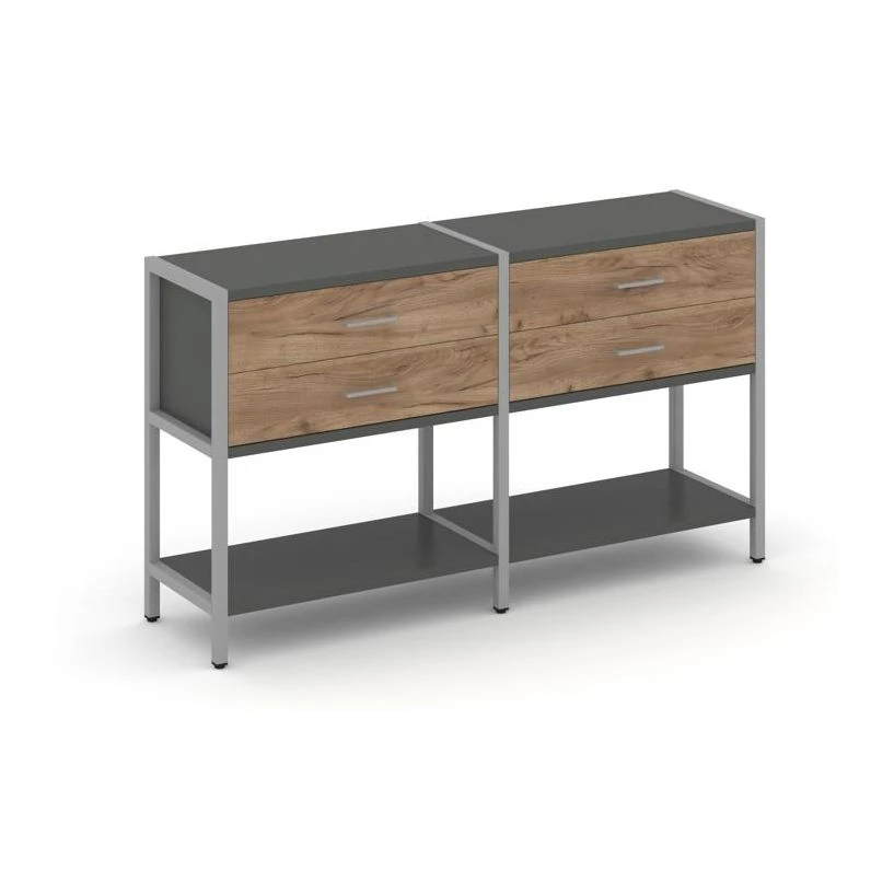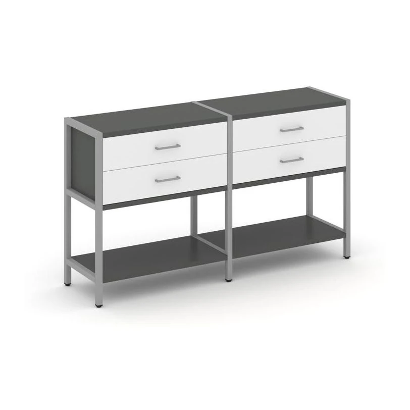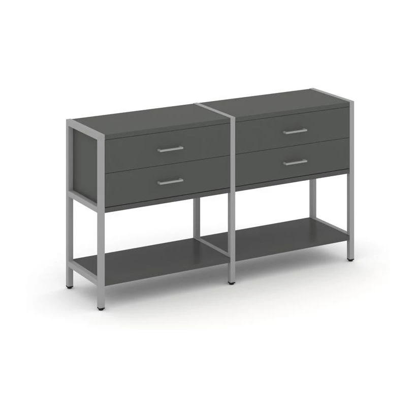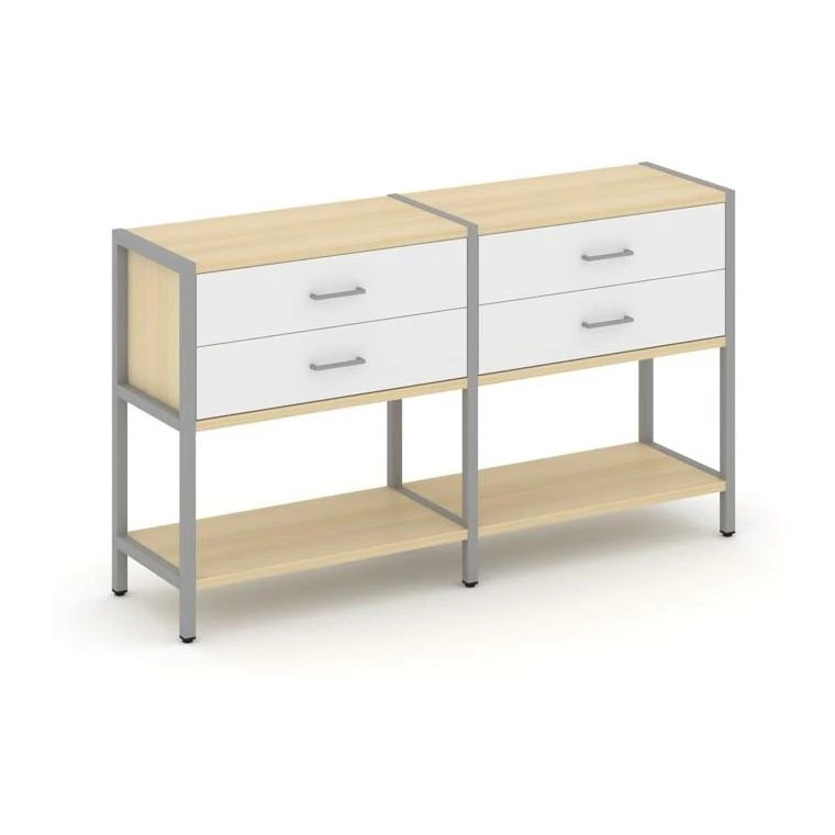 - Двухсекционный стеллаж двухярусный с ящиками 1590х400х879 Шелф Систем / Shelf System