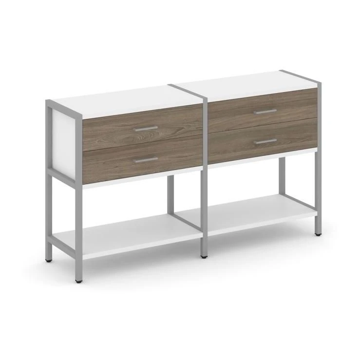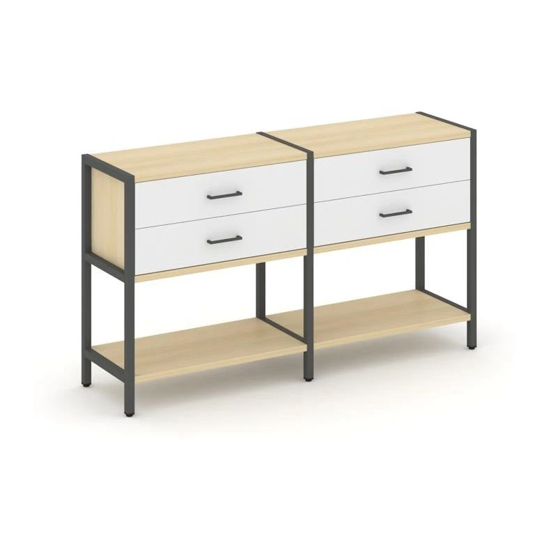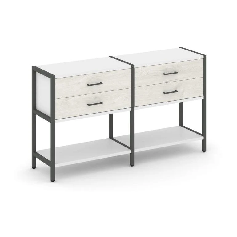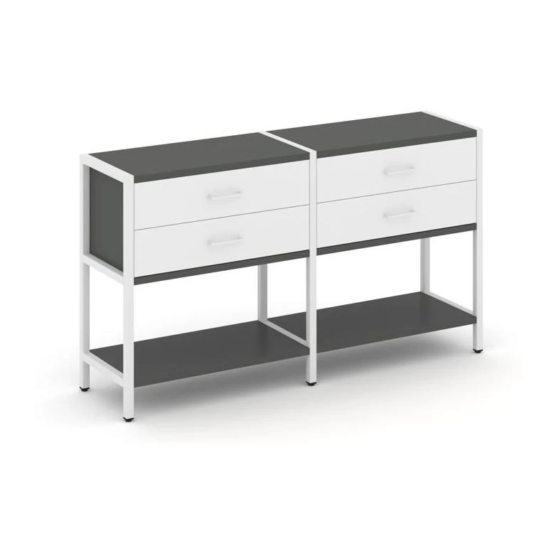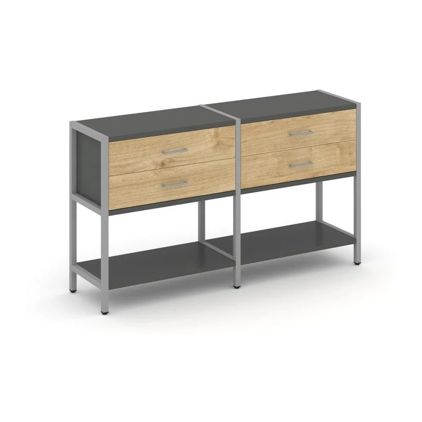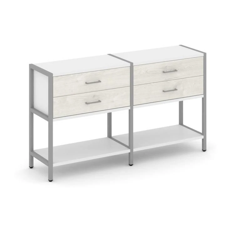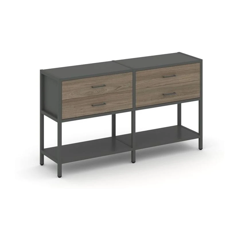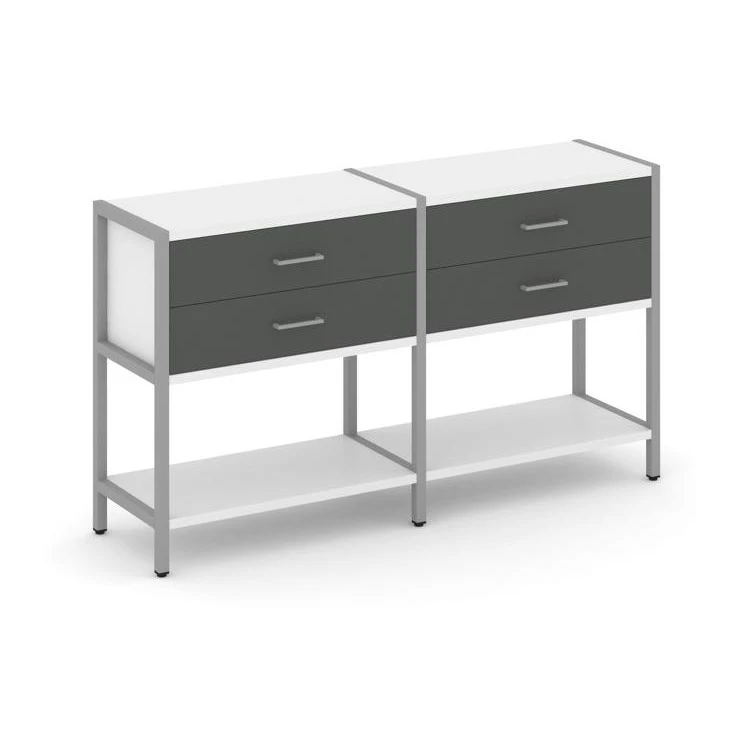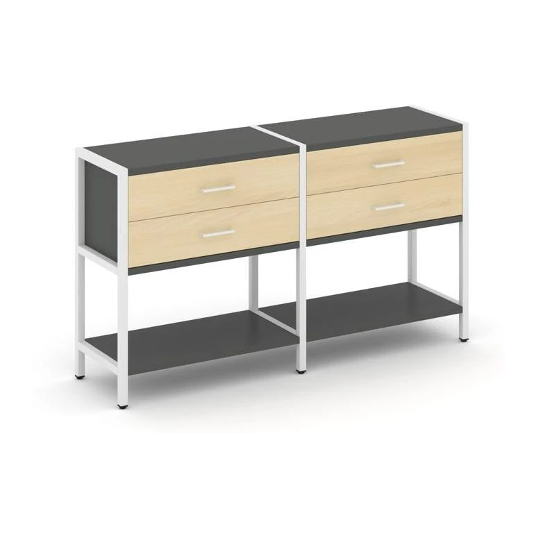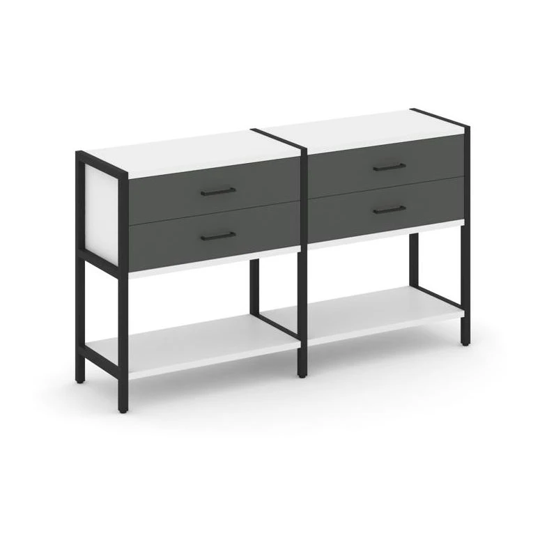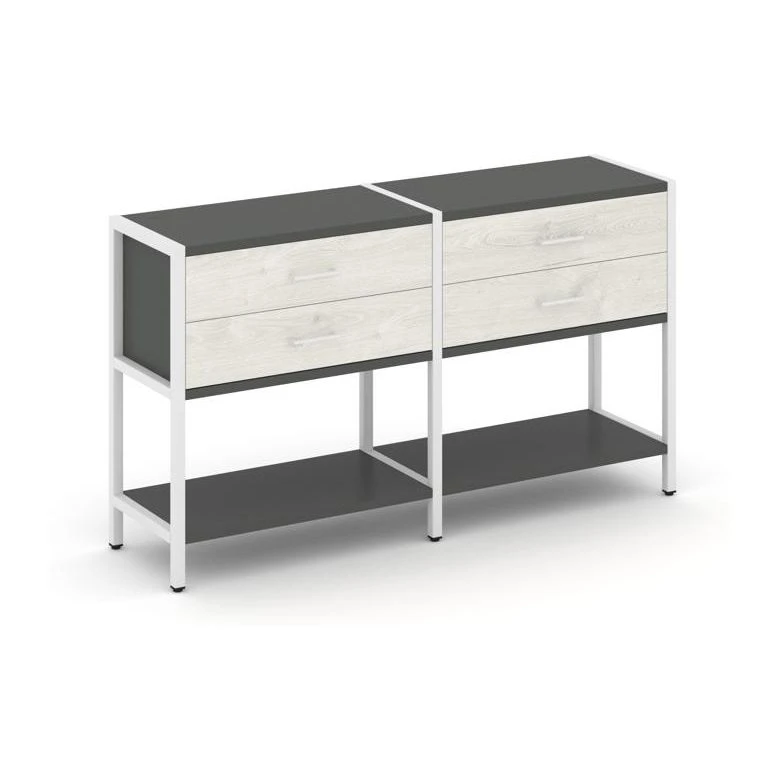 - Двухсекционный стеллаж двухярусный с ящиками 1590х400х879 Шелф Систем / Shelf System