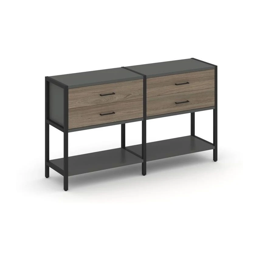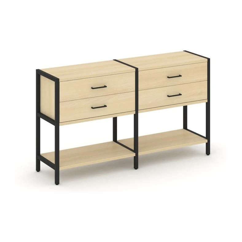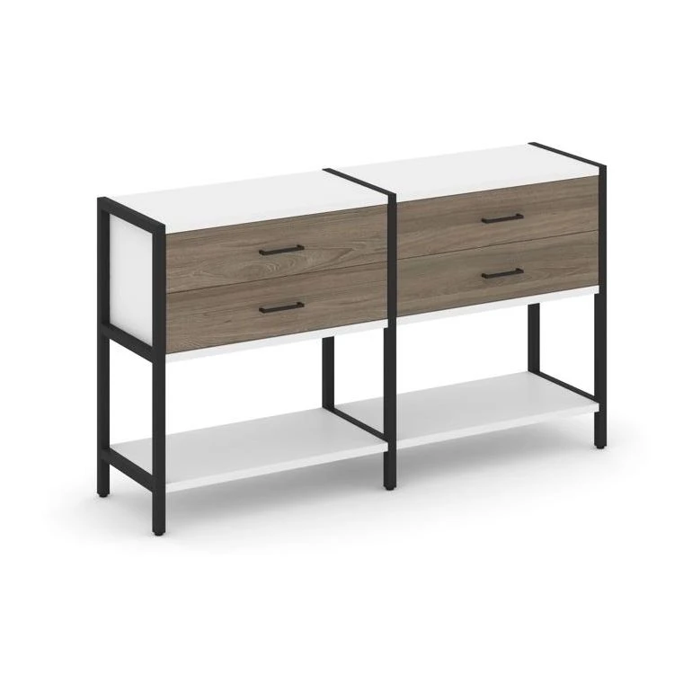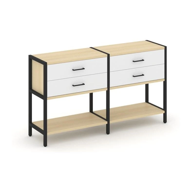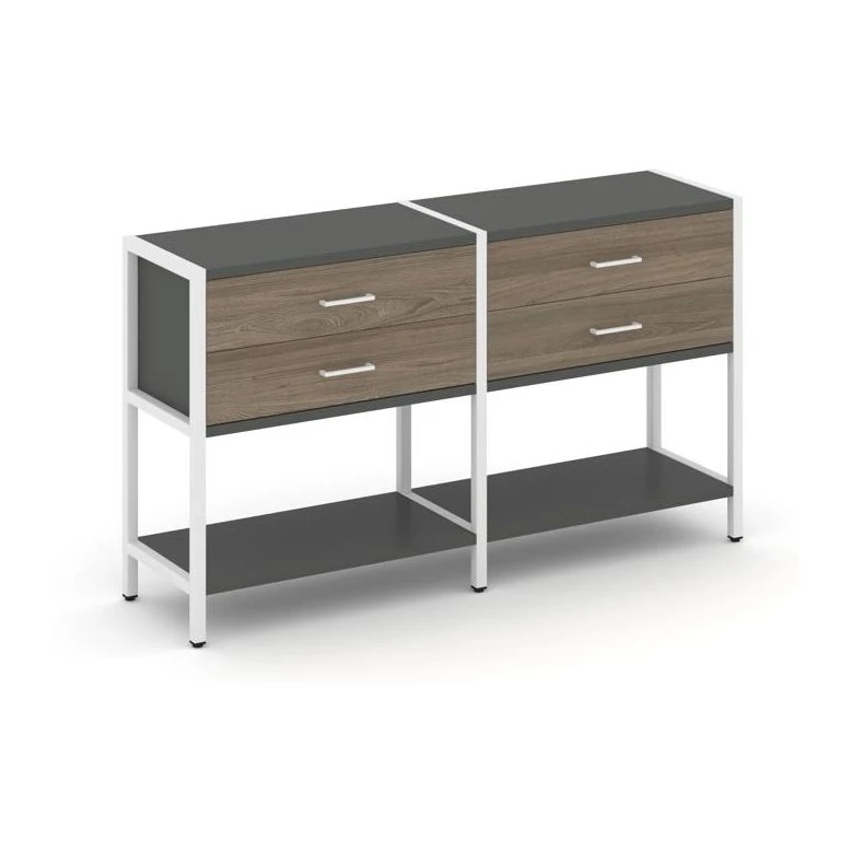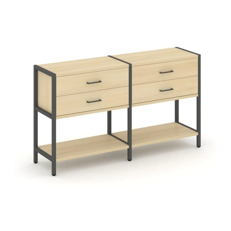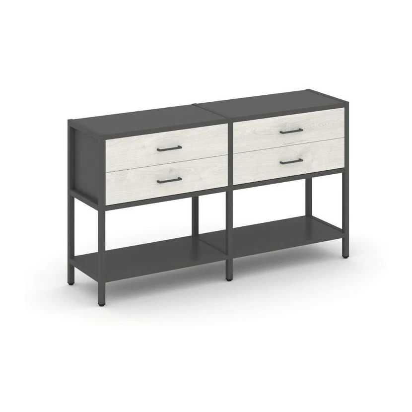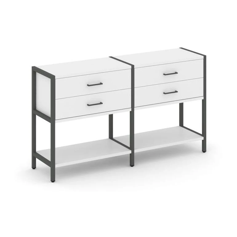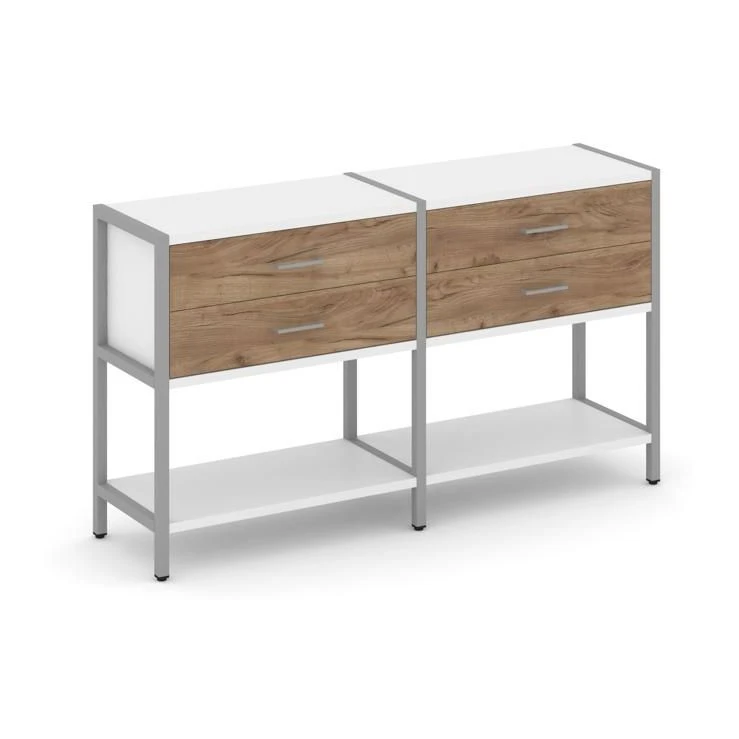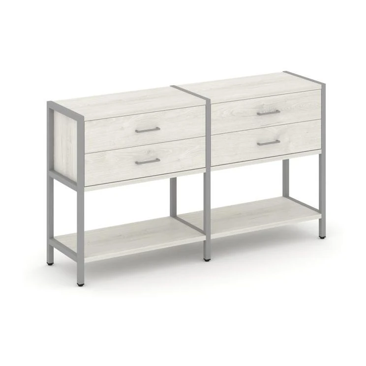 - Двухсекционный стеллаж двухярусный с ящиками 1590х400х879 Шелф Систем / Shelf System