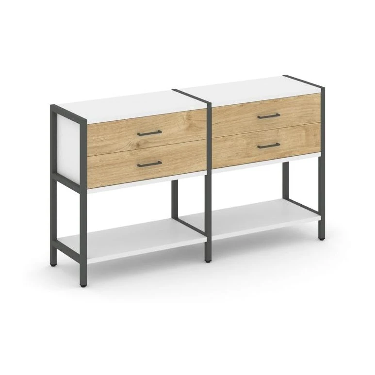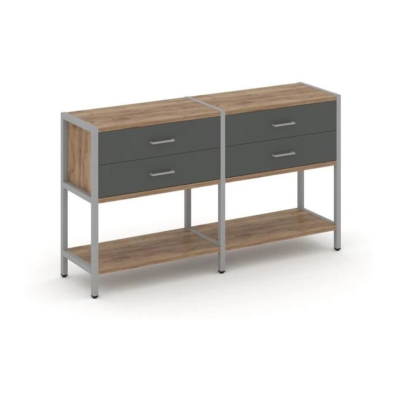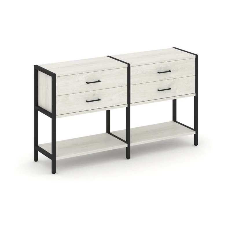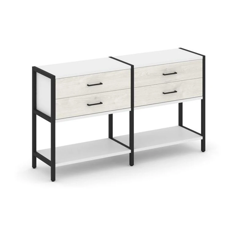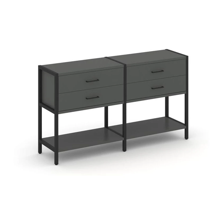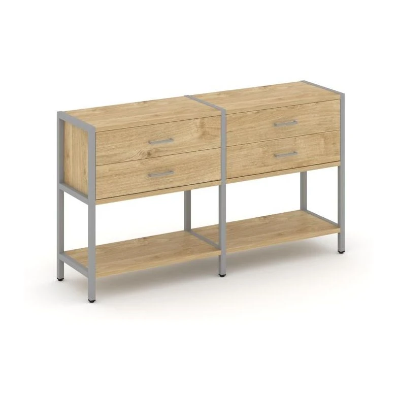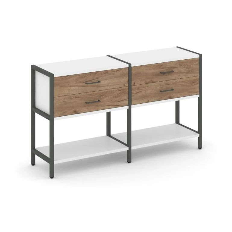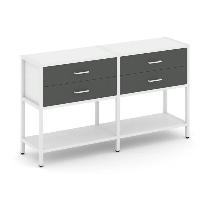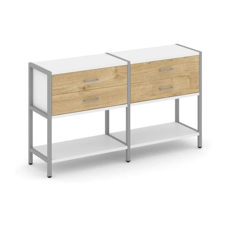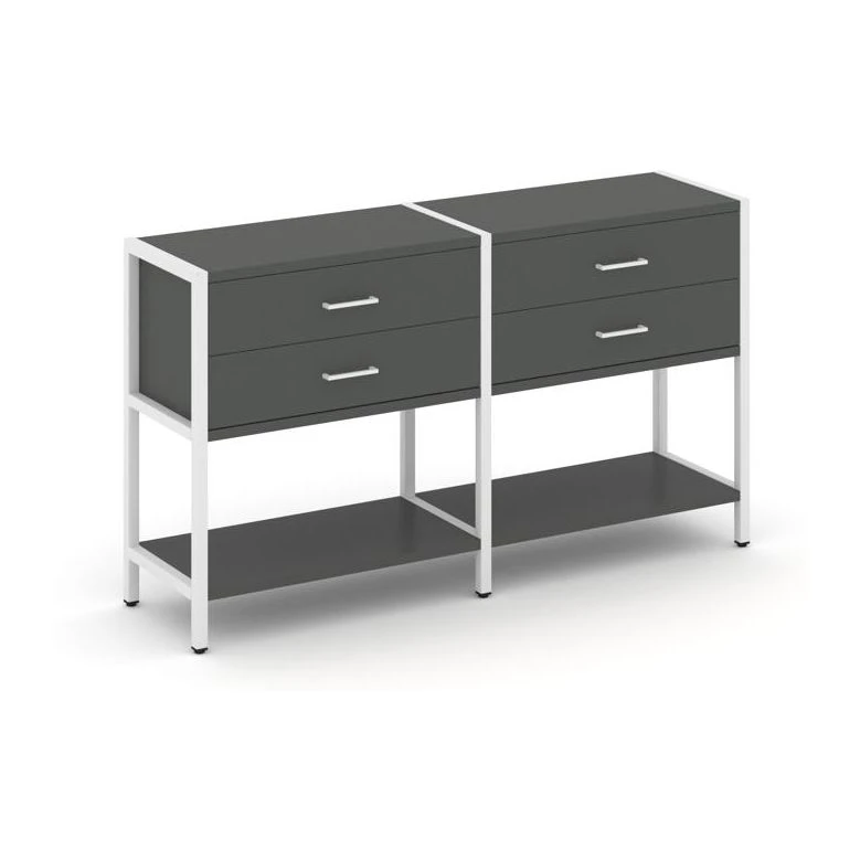 - Двухсекционный стеллаж двухярусный с ящиками 1590х400х879 Шелф Систем / Shelf System