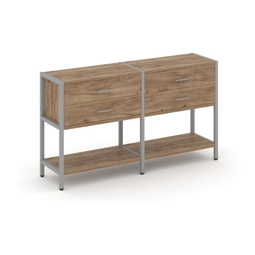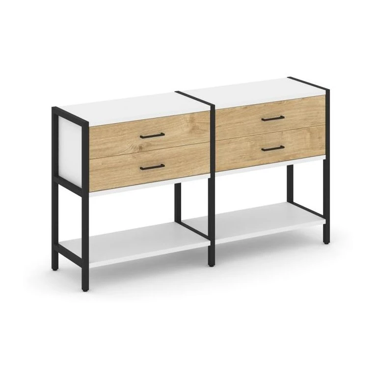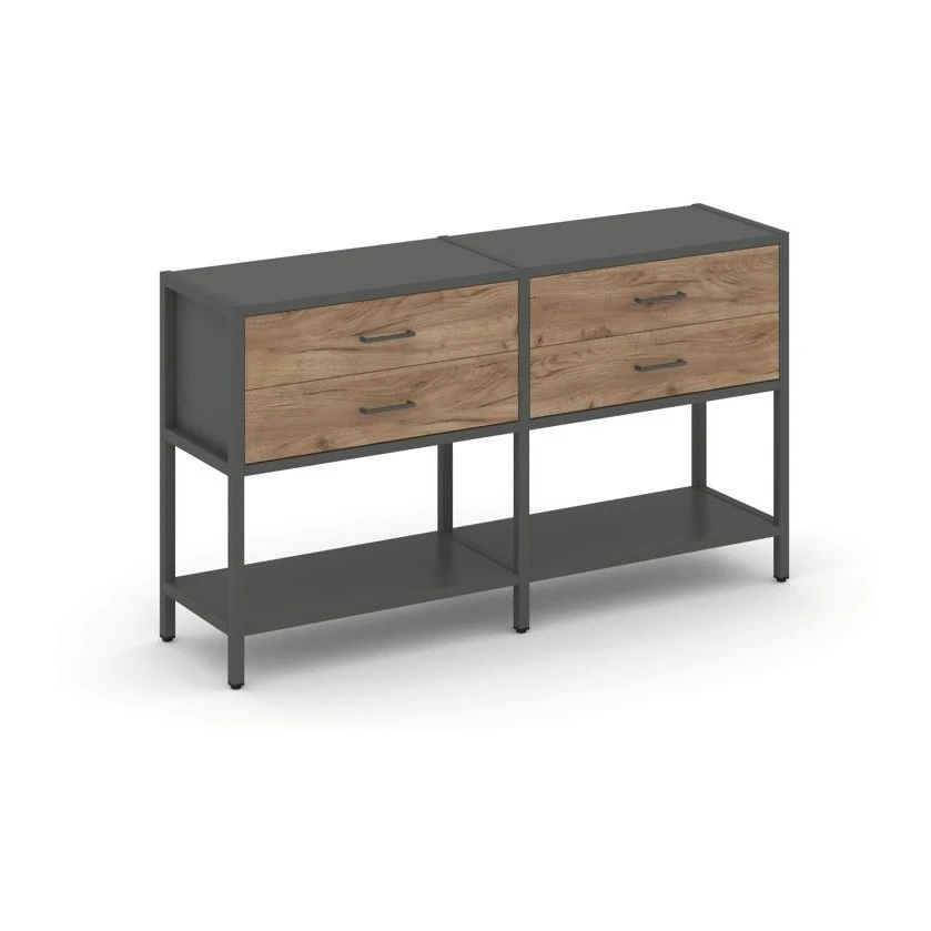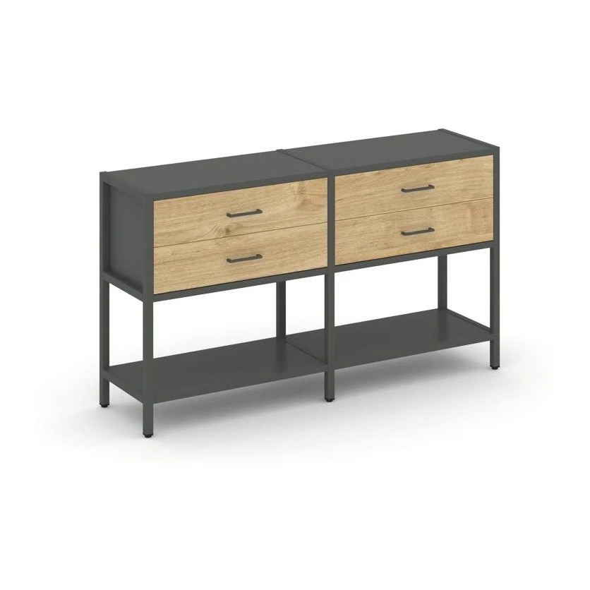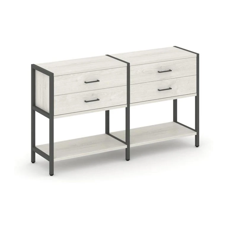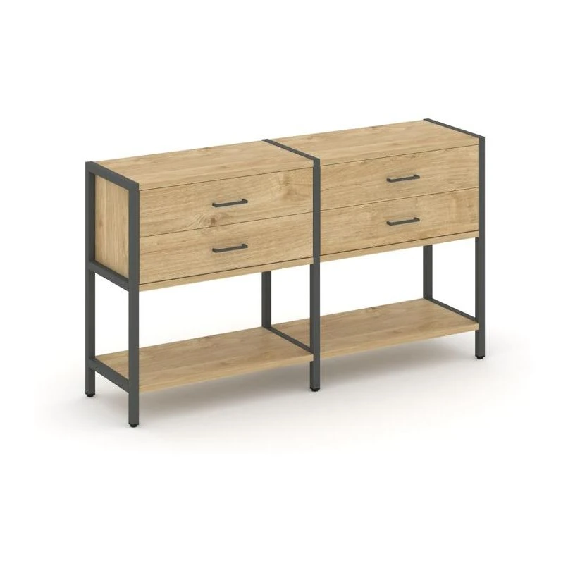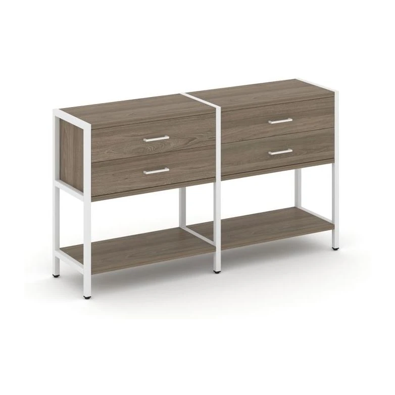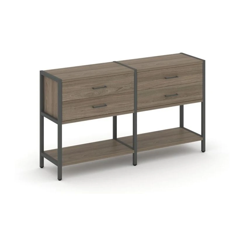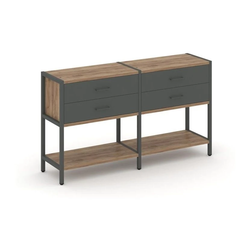 - Двухсекционный стеллаж двухярусный с ящиками 1590х400х879 Шелф Систем / Shelf System