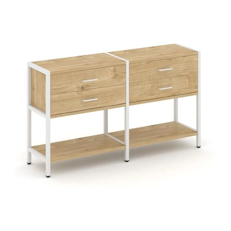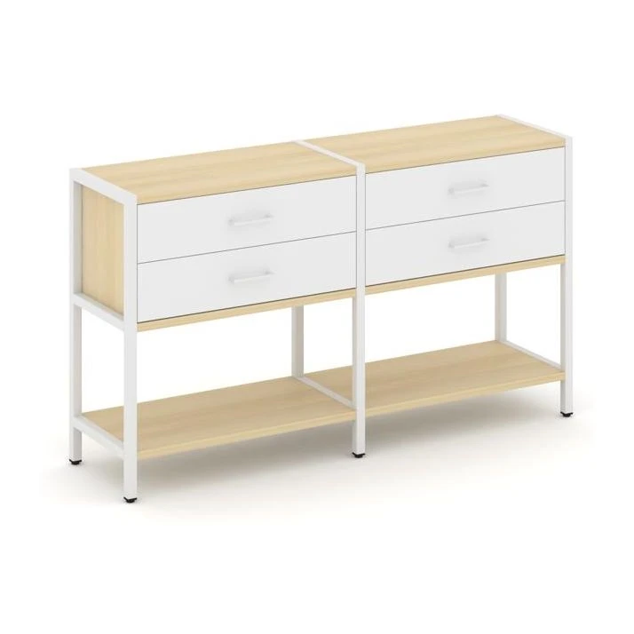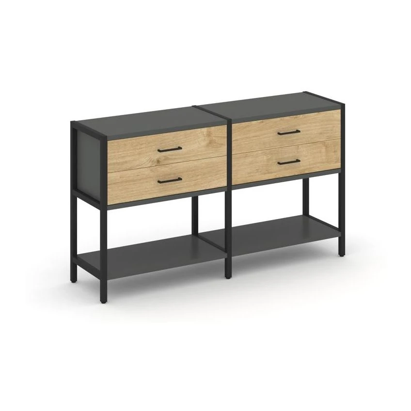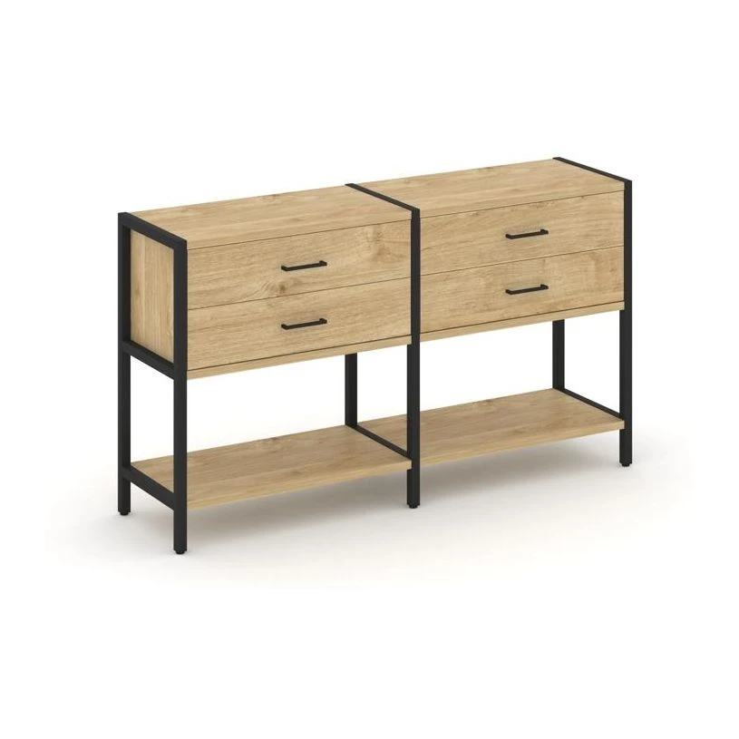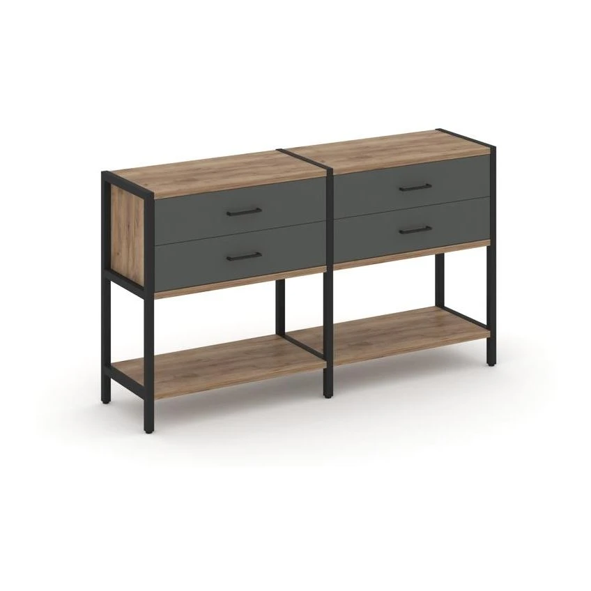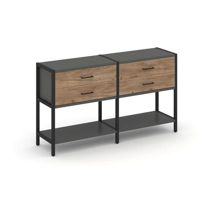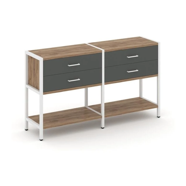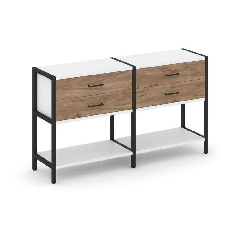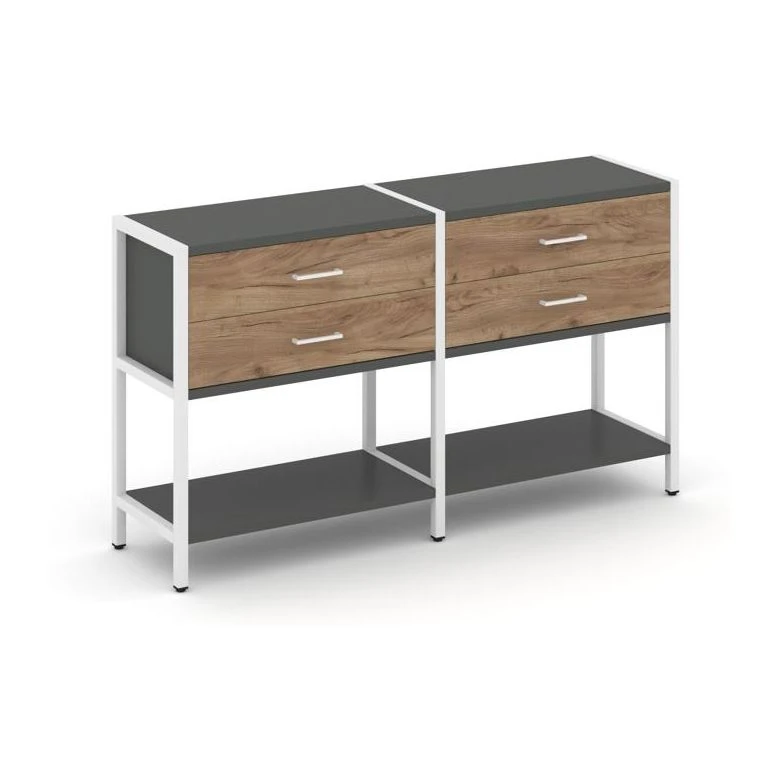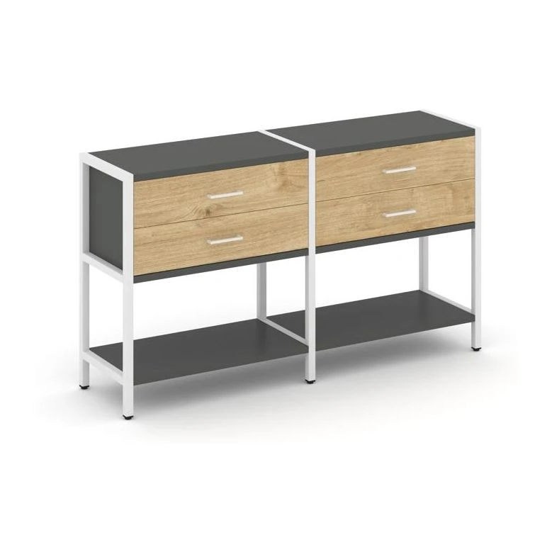- Двухсекционный стеллаж двухярусный с ящиками 1590х400х879 Шелф Систем / Shelf System