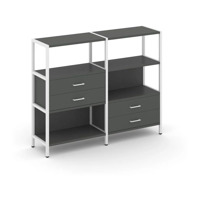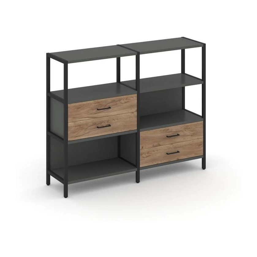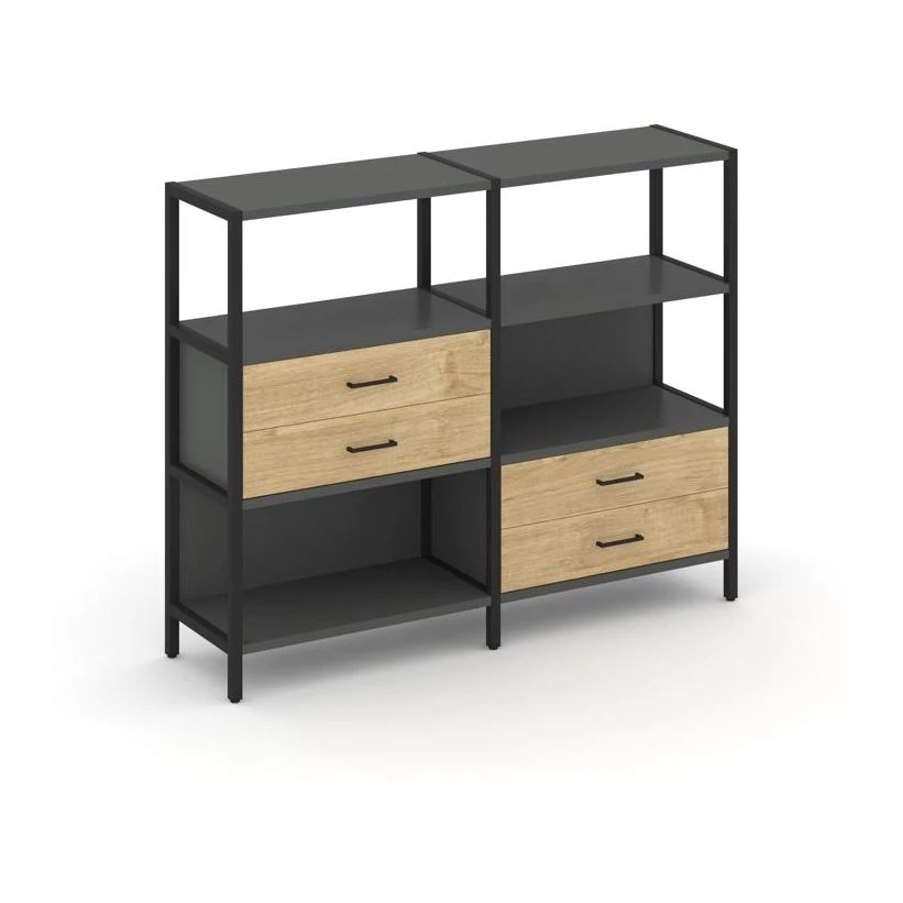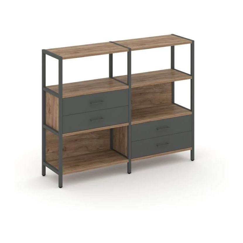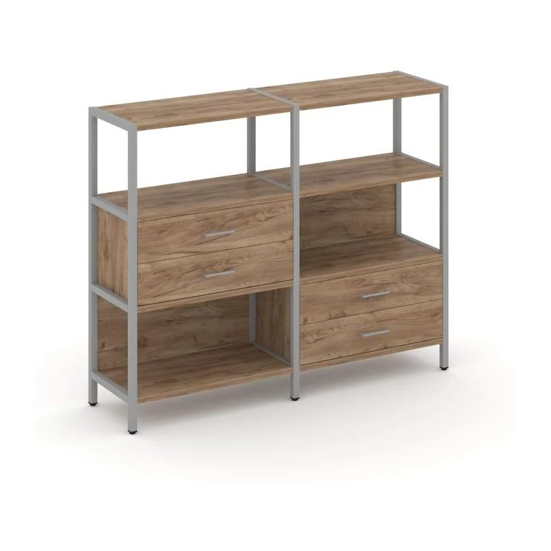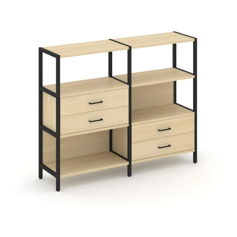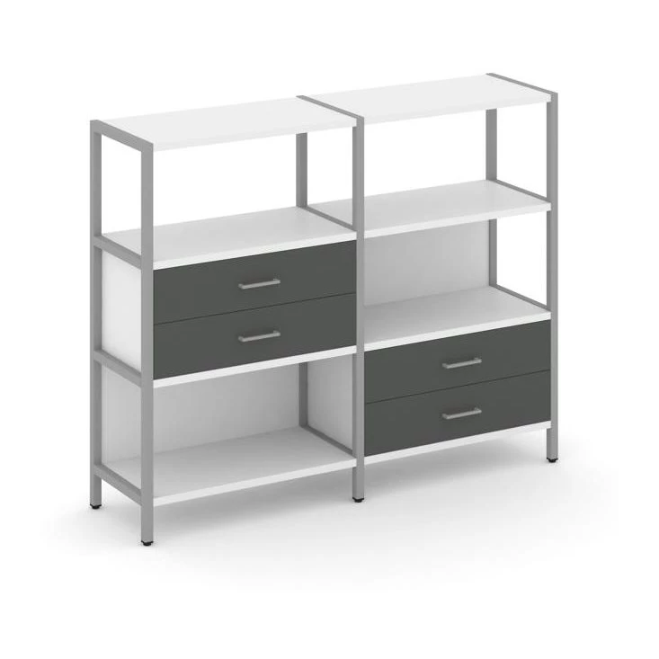 Двухсекционный стеллаж трехярусный с ящиками на двух ярусах 1590х400х1246 Shelf System