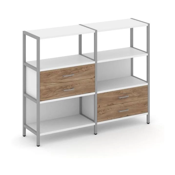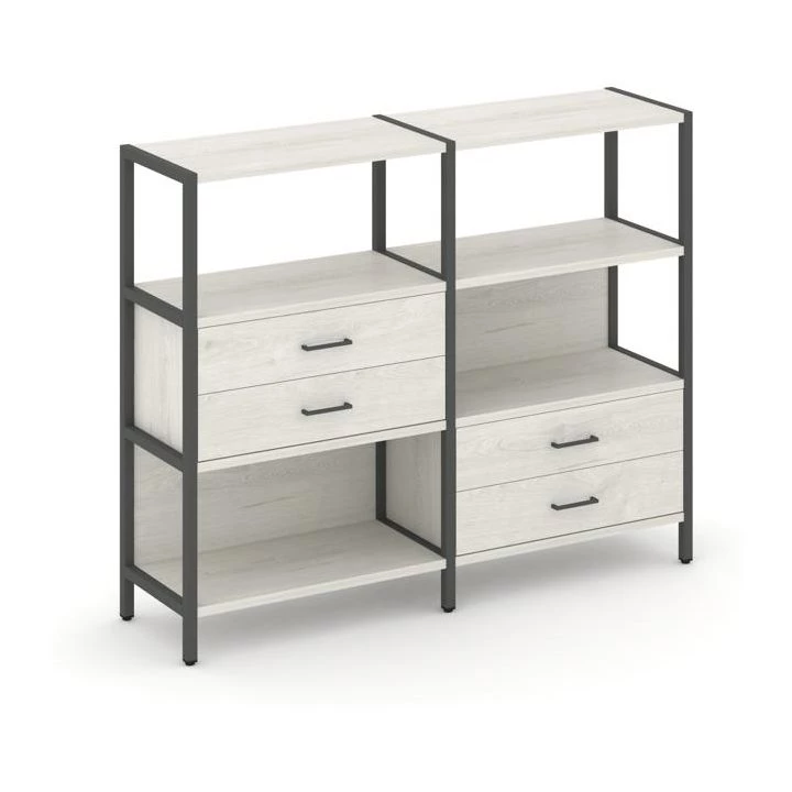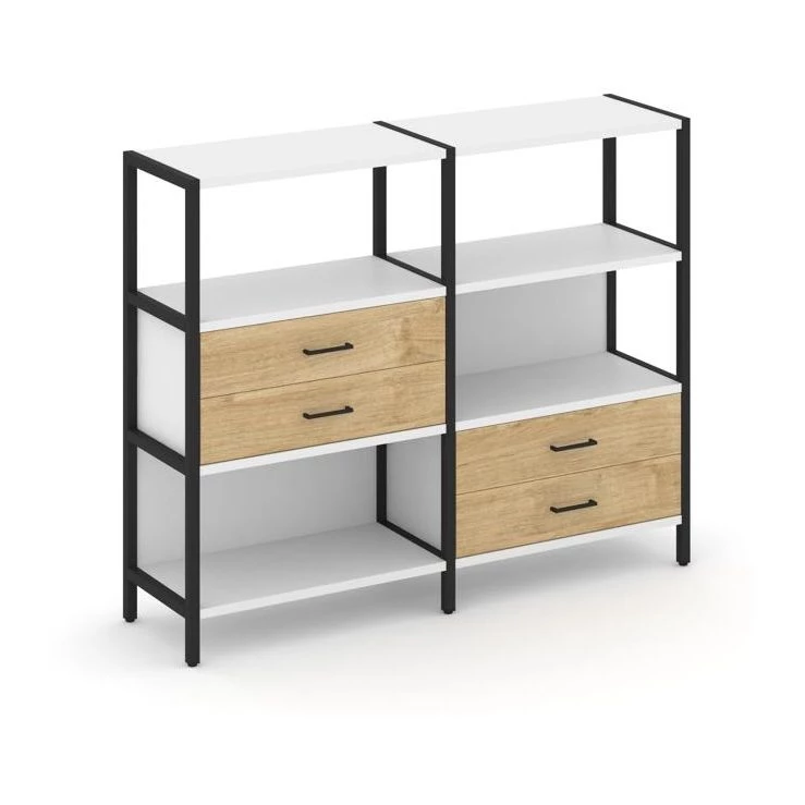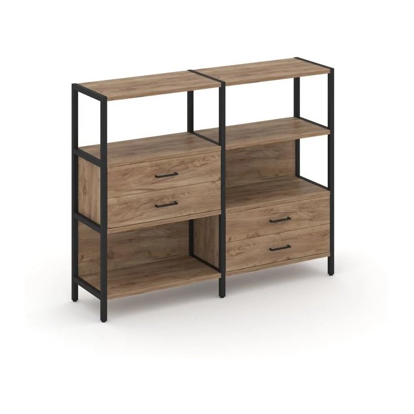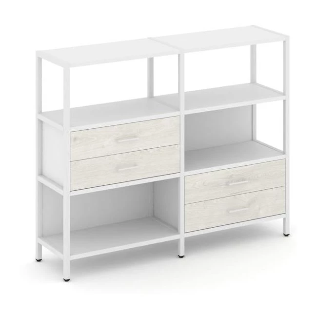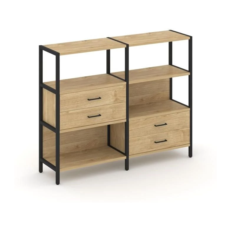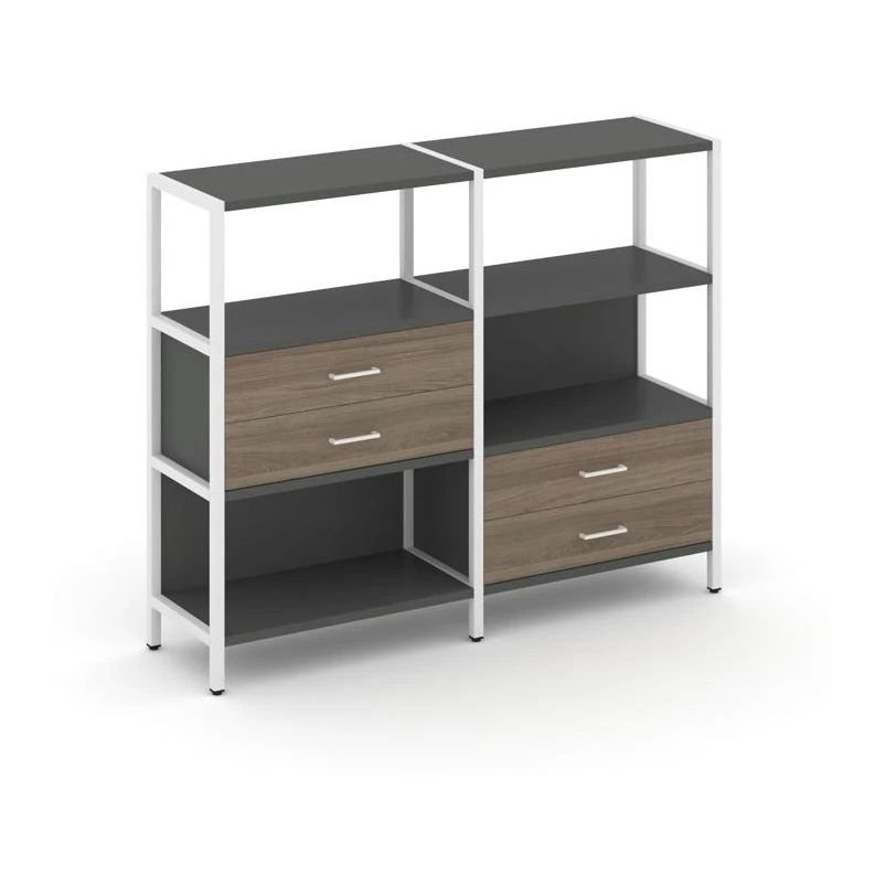 Двухсекционный стеллаж трехярусный с ящиками на двух ярусах 1590х400х1246 Shelf System