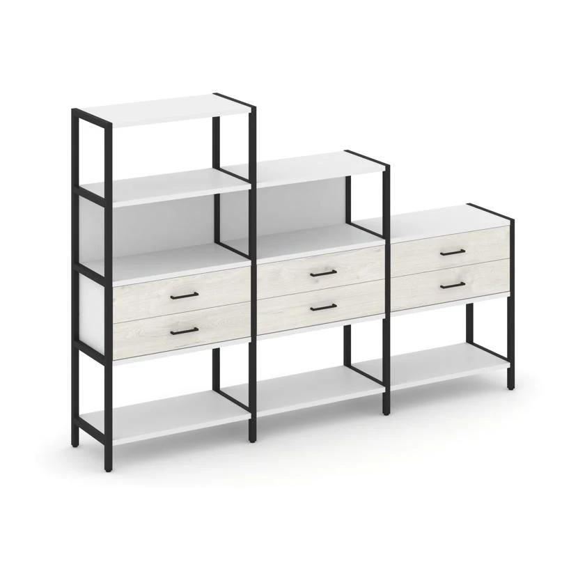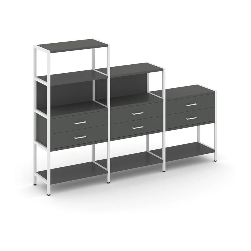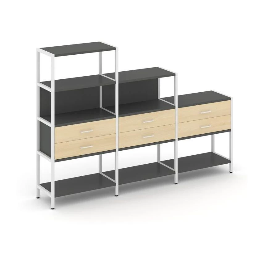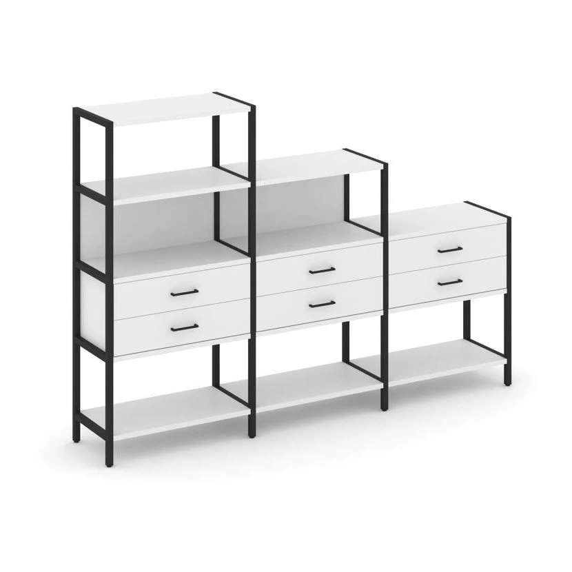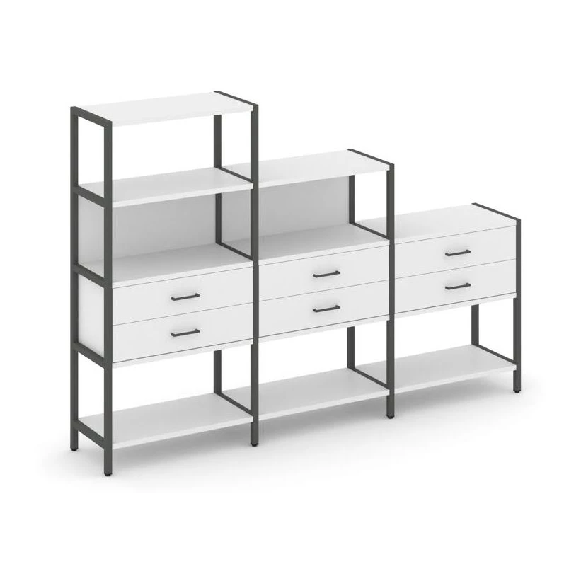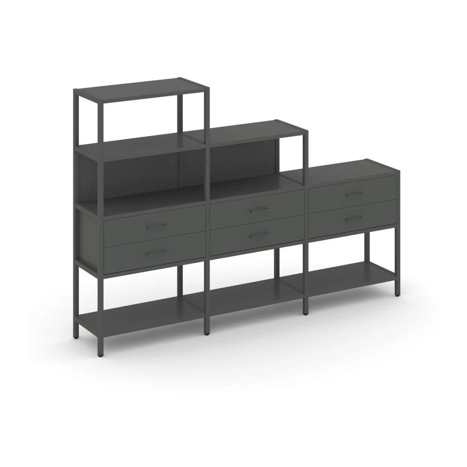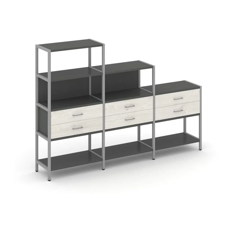 - Трехсекционный стеллаж четырех/трех/двухярусный с ящиками 2730х400х1613 Shelf System