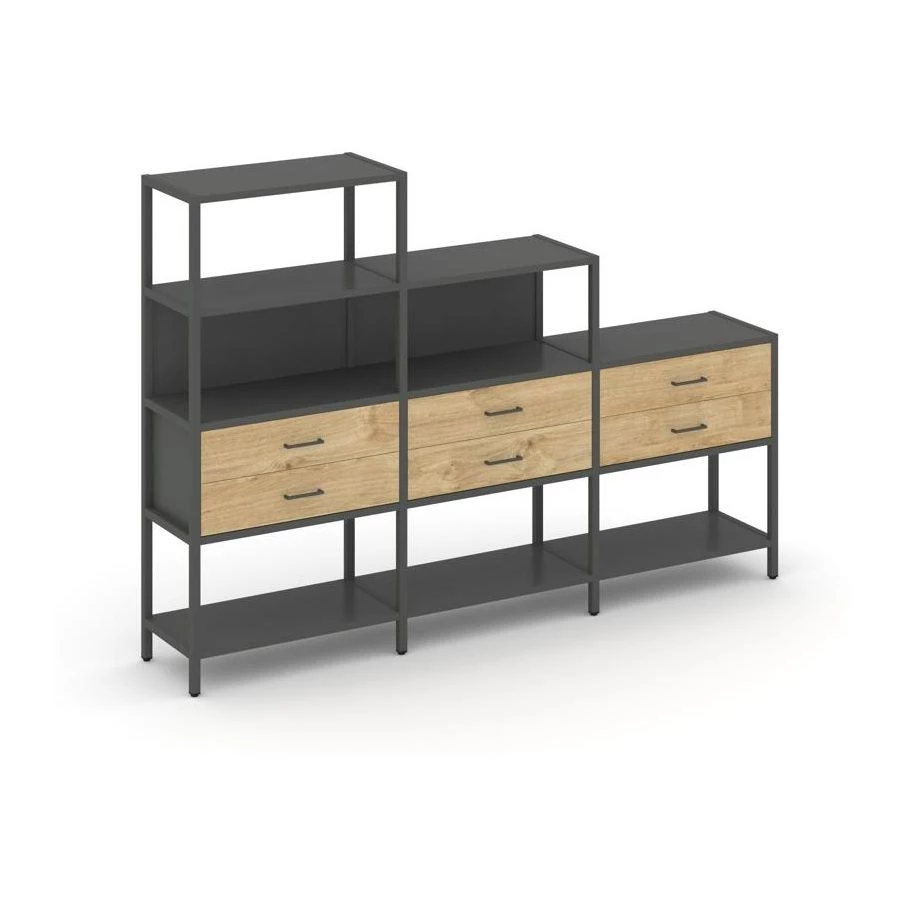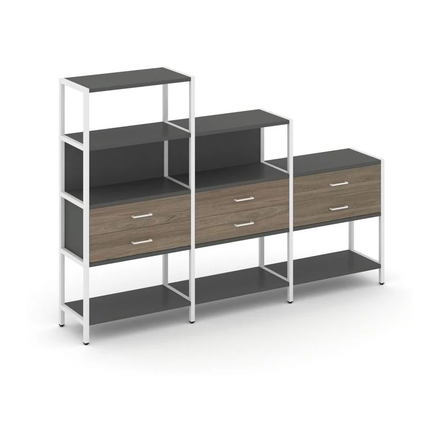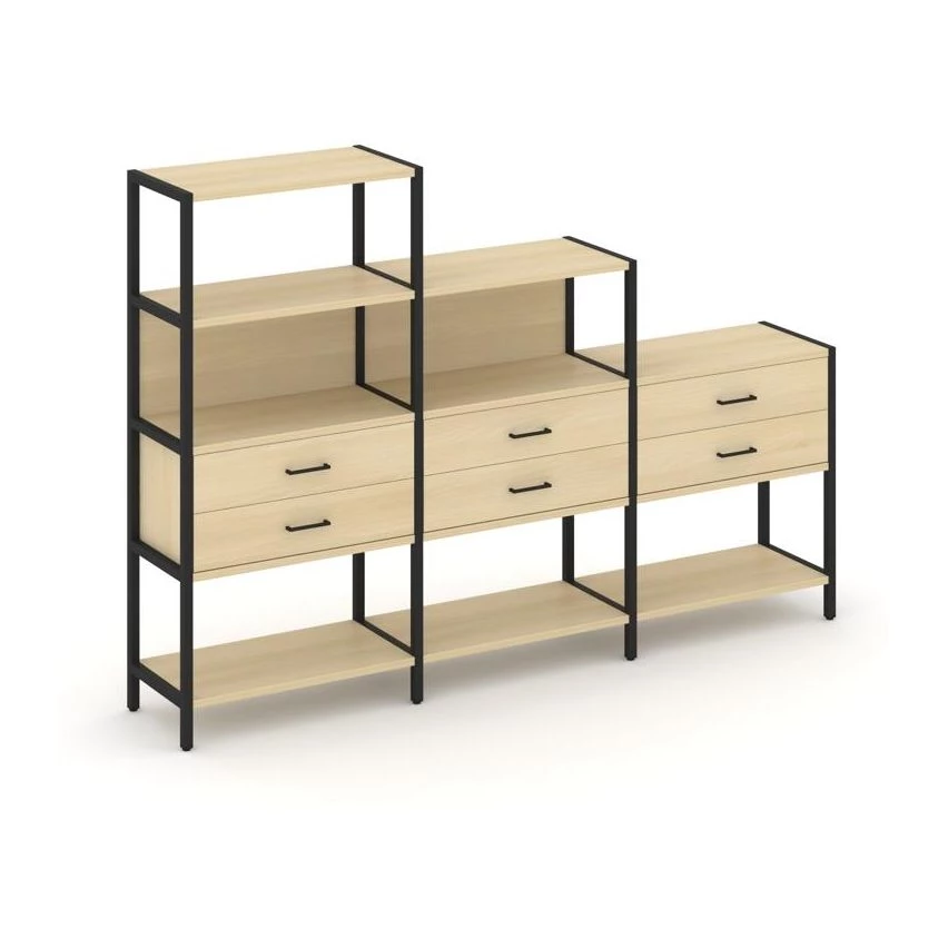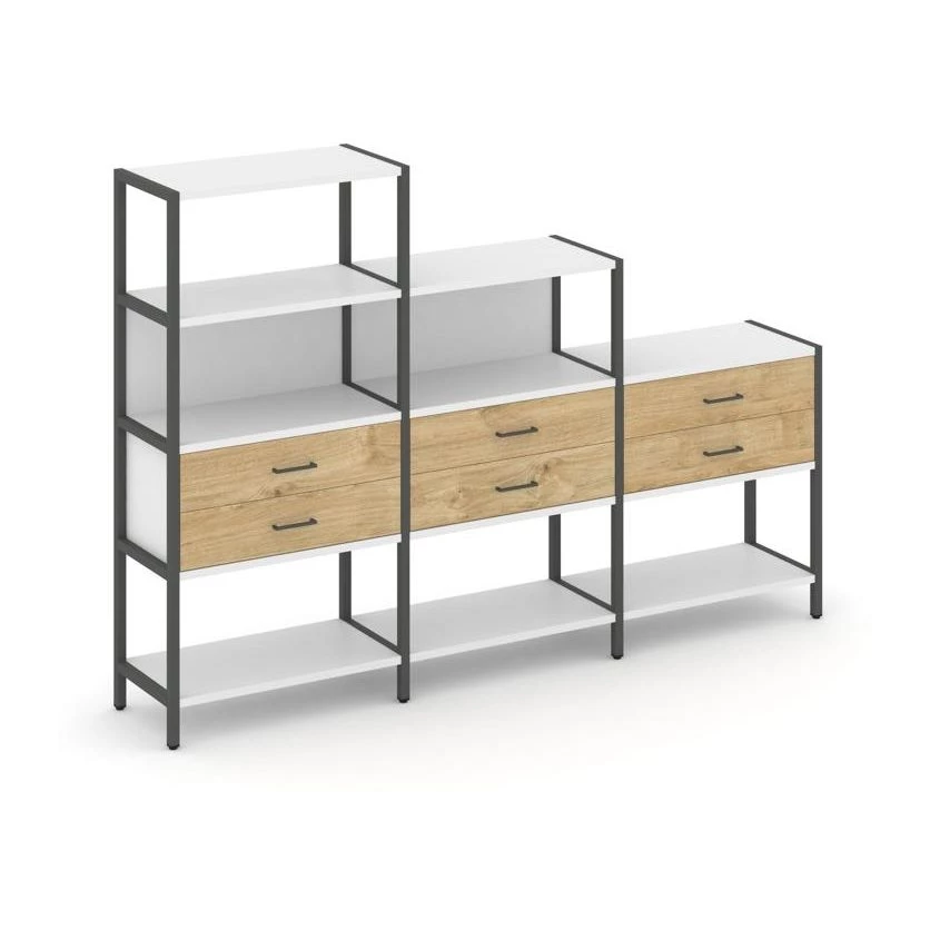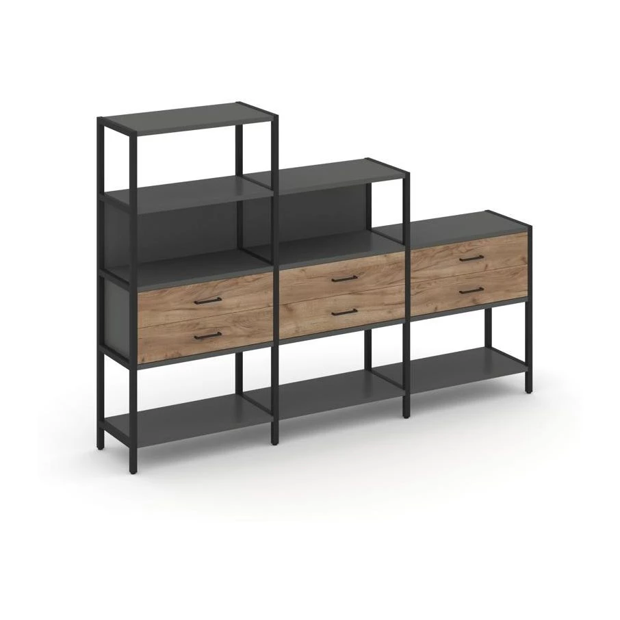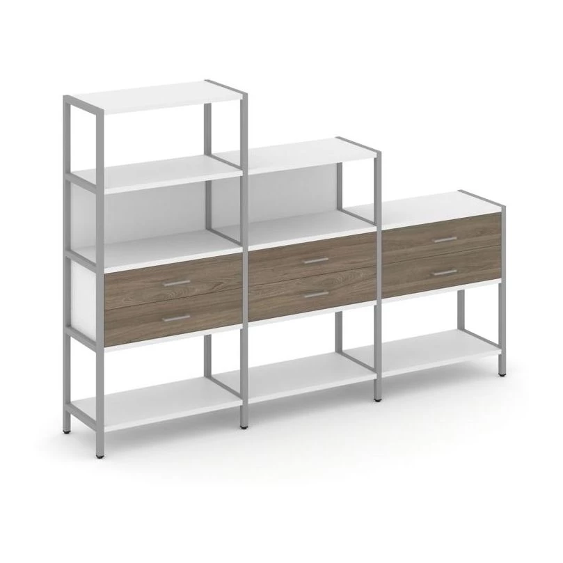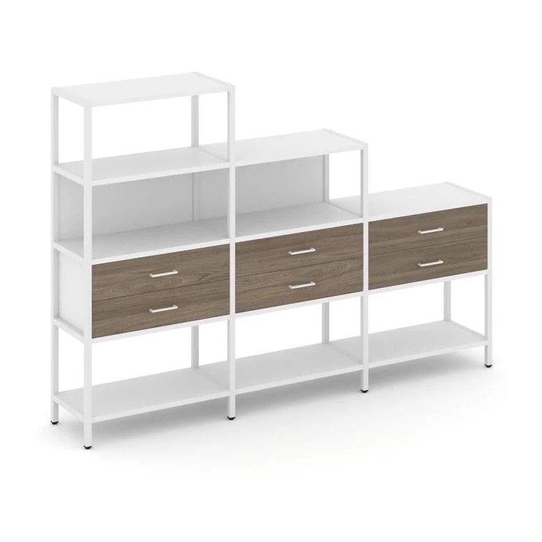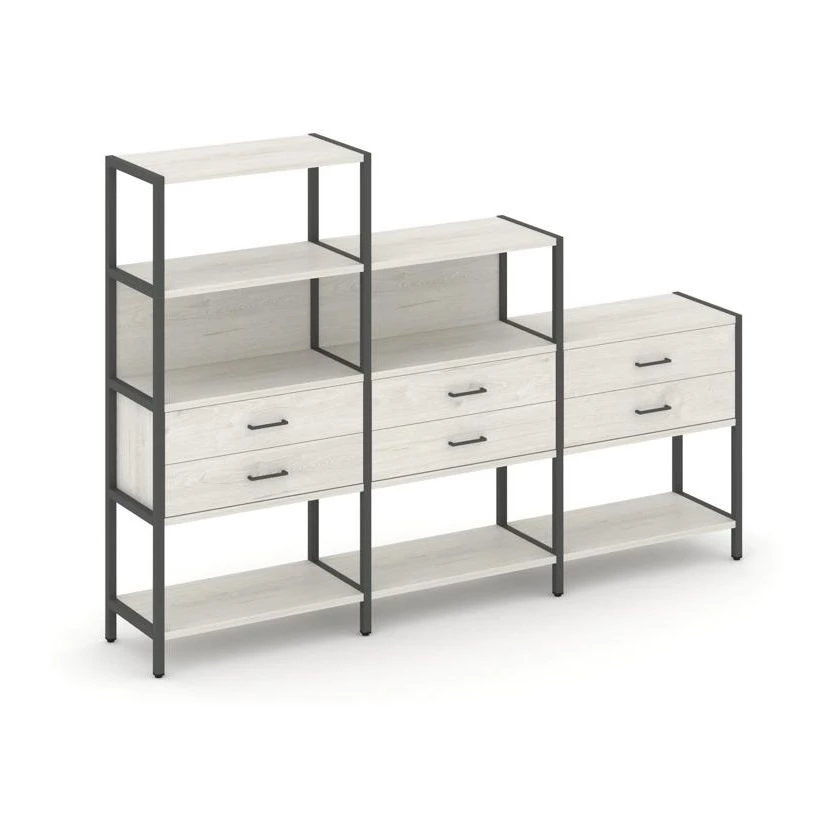 - Трехсекционный стеллаж четырех/трех/двухярусный с ящиками 2730х400х1613 Shelf System